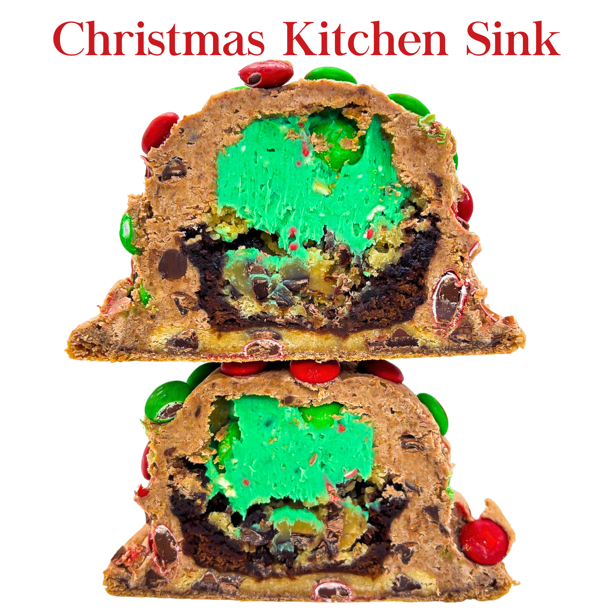 Our Mega-Stuffed cookie dough gets all the candy bits mixed in, has a cookie base, either brownie or cupcake fillings, and rolled in the yummiest toppings!